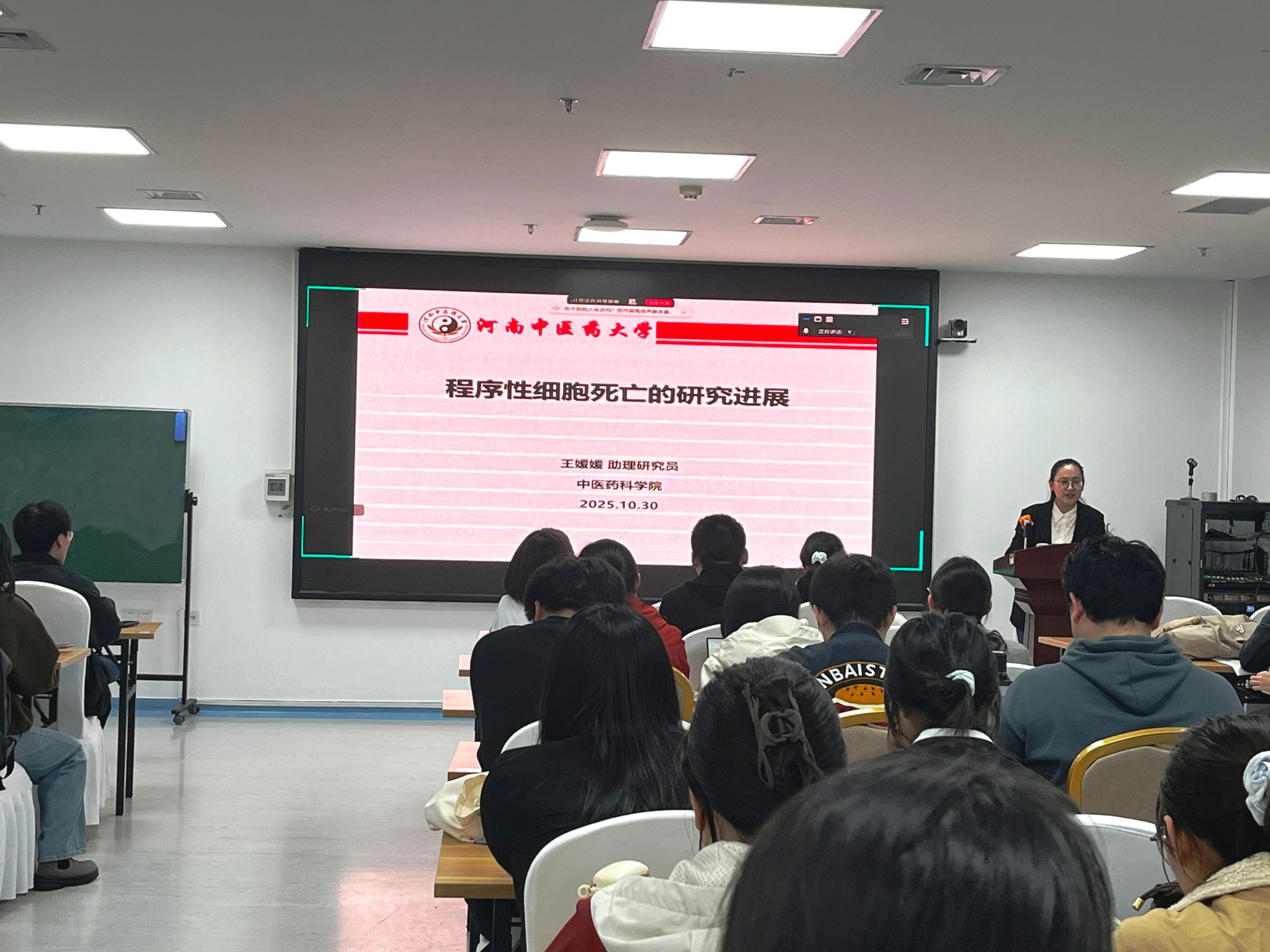 本网讯(文/翟盼盼 图/韩姗姗)2025年10月30日晚,儿科医学院组织开展本年度国自然培训系列讲座第一讲,特邀河南中医药大学仲景青年学者王媛媛博士,以“程序性细胞死亡的研究进展”为题,为全院职工及研究生带来一场兼具基础理论深度与临床转化价值的学术盛宴。会议由学研办主任韩姗姗主持。